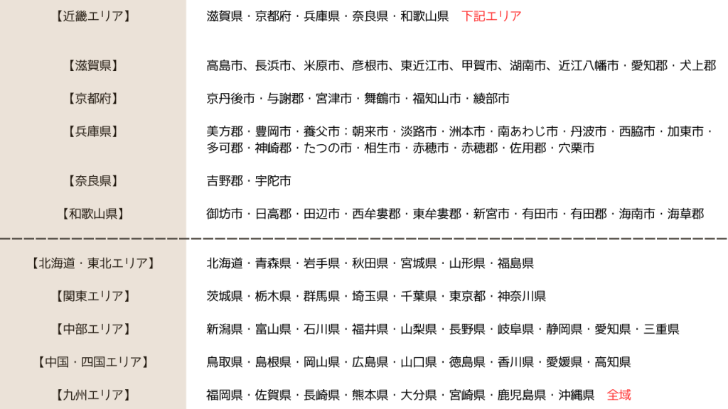 対象エリア:お住まいのエリアによって、交通費サポートが受けれるかを下記の一覧からご確認ください!